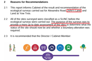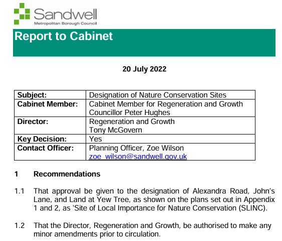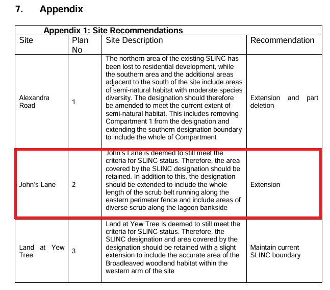 The John’s Lane area we will look at below, but attention should be drawn to the fact that the area in question was already a designated SLINC to Sandwell council, but also that this review extended the area based on a claimed ecological survey, and yet we get no explanation for the change in the area, which appears to me to just appear as though the council are “doing something” with areas so that they can later claim to be ecologically good eggs.