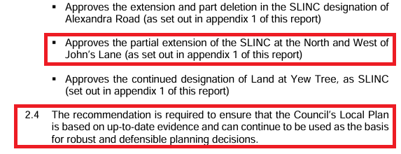 So this means that the area that they are supportive of levelling to build 550 houses, including the SLINC would be “defensible”, right, in their local plan, based on “up-to-date evidence” from 2022?